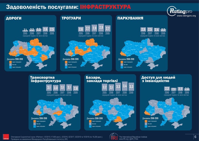 Натомість транспортна інфраструктура покращилася в Кіровоградській та Івано-Франківській областях. Якість доріг виросла в дев’яти областях України. Індекс Києва за цими всіма показниками, а також за рівнем транспортної інфраструктури і тротуарів, упродовж року не змінився.