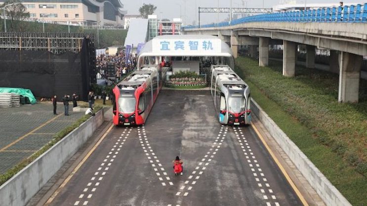 Китай розробляє безрейкові трамваї з 2013 року, щоб розвантажити трафік у густонаселених мегаполісах і заразом покращити екологічну ситуацію. Ця система також вважається дешевшою за метро й навіть за звичайний трамвай завдяки відсутності потреби в прокладанні колій. Вартість будівництва одного вагону складає 2,2 мільйона доларів (приблизно 50 мільйонів гривень). Для порівняння, чотири кілометри лінії метро на Виноградар, згідно з тендером, коштуватимуть принаймні шість мільярдів гривень.
