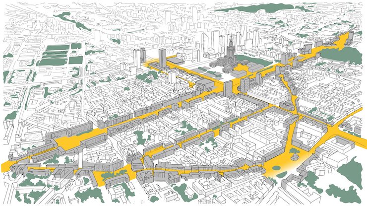 У районі навколо площі Дефіляд планують збільшити кількість зелені та активізувати перші поверхи будинків. Місто проведе конкурс на оренду приміщень на вулиці Маршалковській – хочуть, аби кав’ярні, магазини і галереї оживили простір.