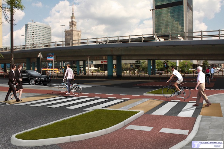 Під час третього етапу оновлення центру Варшави ліквідують кільцеву розв’язку і замінять її на однорівневе перехрестя з наземними переходами та велодоріжками.