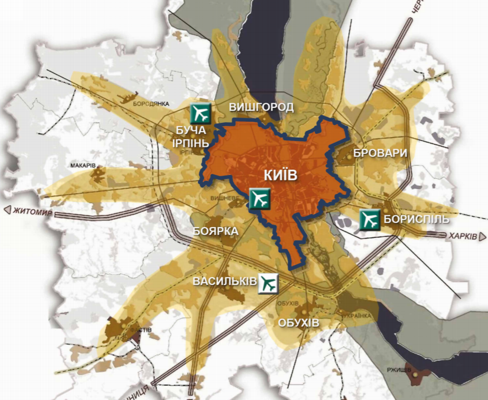 «Київ від агломерації хоче отримати саме Велику окружну дорогу, наземне метро в бік Броварів та в одеському напрямку», – вважає Міщенко.