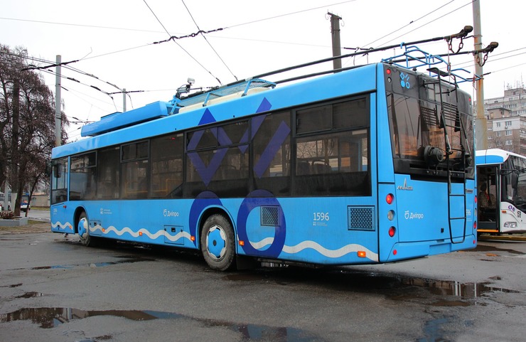 У своєму виборі розробники спиралися на статистику. Більше 65% автобусів у Дніпрі жовтого кольору, а міські трамваї багато десятиліть були червоними. Відповідно гармонійним кольором для тролейбуса став синій.