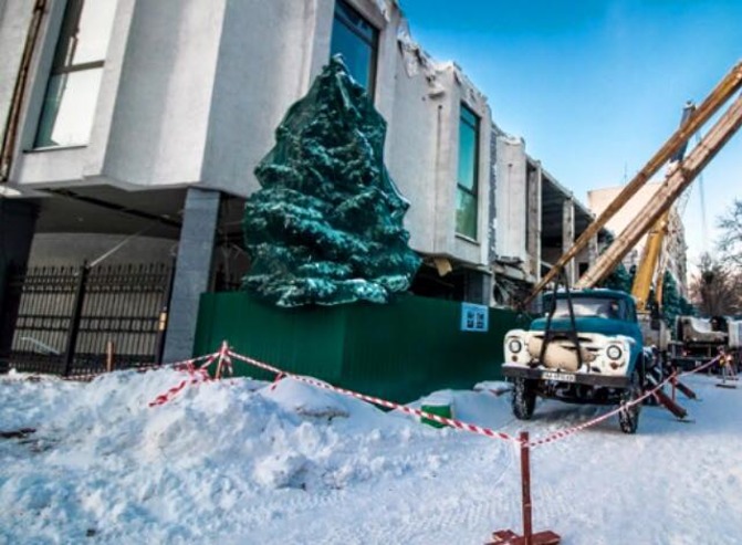 При цьому спочатку в ході будівельних робіт ялини накривали мішками.