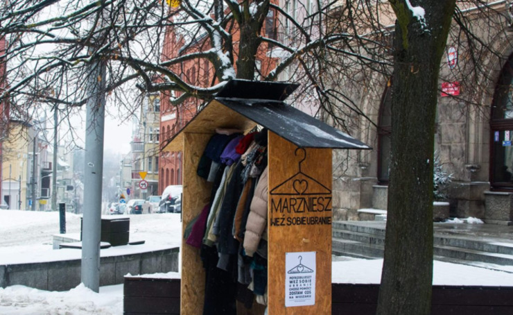 У містах Польщі з’явилися «вішалки», куди можна принести зимовий одяг для бездомних