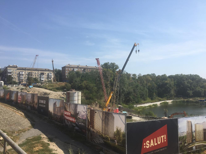 Забудовники парканом перегородили підхід до озера і завезли на територію будівельну техніку. Коли місцевий мешканець Ілля Станіславський фотографував будівництво, його побили охоронці. Наприкінці 2018 року Київрада підтримала рішення розірвати договір оренди із девелопером.
