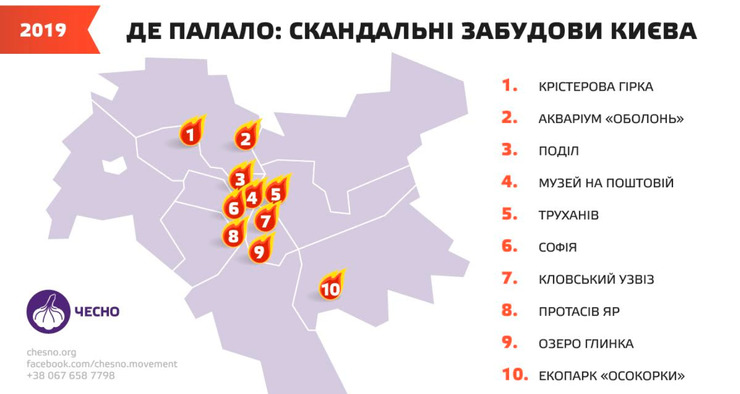 Громадський рух ЧЕСНО зібрав ТОП-10 «гарячих точок», де київська громадськість протестувала проти незаконної забудови. В основному історія цих протистоянь ще не завершена.