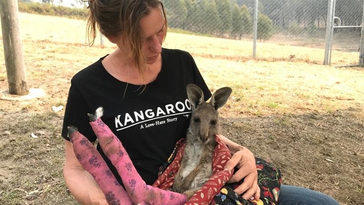 Волонтер порятунку дикої природи Трейсі Додд тримає кенгуру з обпаленими накладками для ніг після порятунку від пожежі в кінці грудня. Фото: Джилл Грейлоу / Reuters