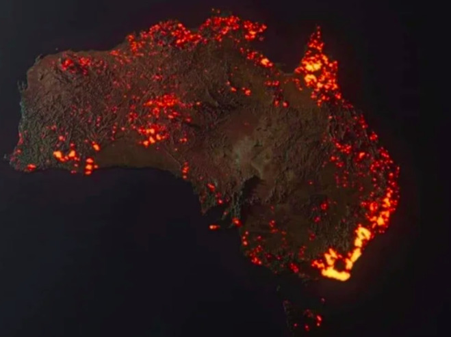 Пожежі в Австралії тривають з вересня 2019 року. За цей час згоріло понад 1200 будівель, загинуло 25 людей, вигоріло понад 8 млн гектарів землі. До боротьби з вогнем залучили військових і волонтерів. Постраждало багато туристичних місць. Ситуацію в режимі онлайн можна спостерігати на карті.