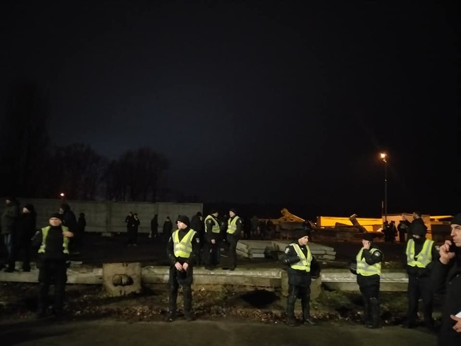 Протестувальники знесли частину бетонного паркану і демонтували огорожу з сітки.