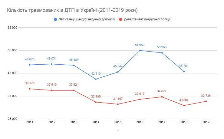 Як видно з порівняльного аналізу, звіти станцій швидкої медичної допомоги показують, що травмованих на 10-15 тис. більше кожного року. Причини заниження даних Нацполіцією невідомі.