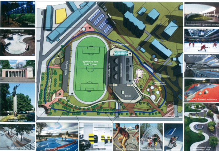 На стадіоні обіцяють зробити скейт-парк, памп-трек, бігові доріжки і відкрите для всіх охочих футбольне поле.