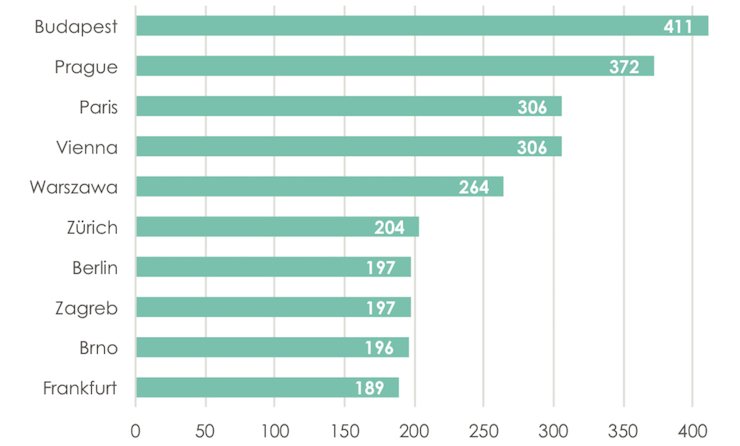 Найбільш завантаженою є мережа трамваїв у Будапешті – понад 400 мільйонів пасажирів на рік.