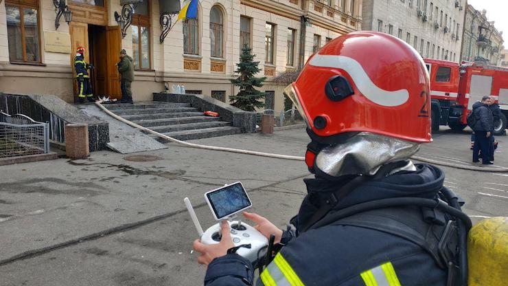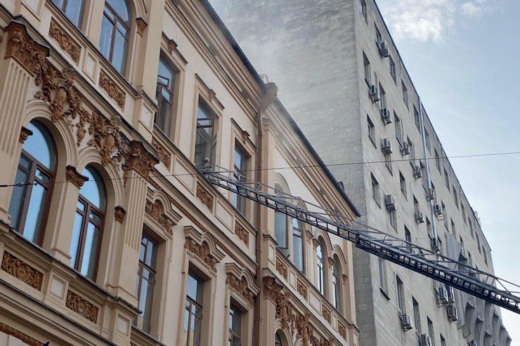 При цьому чотирьох людей двелося рятувати: двох вивели автодрабиною, ще двох – сходами. Працівники Мінкульту опублікували відео того, як колег евакуювали драбиною: