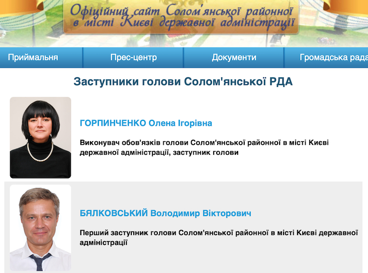 У січні цього року в Солом’янській райадміністрації змінився керівник. Замість Володимира Бялковського обов’язки голови РДА почала виконувати його заступниця Олена Горпинченко.