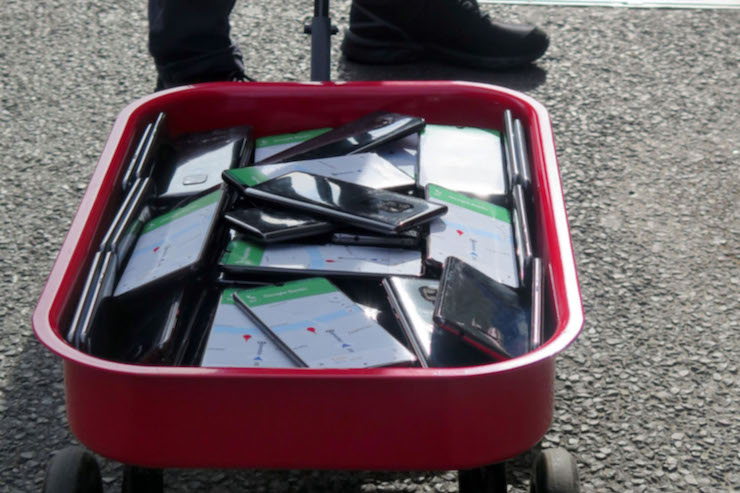 Візок із 99 смартфонами, які художник придбав на секонд-хенді. Фото: simonweckert.com