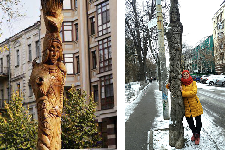 Комунальники спиляли дерев’яну скульптуру «скіфської жінки» біля Золотих воріт (фото)