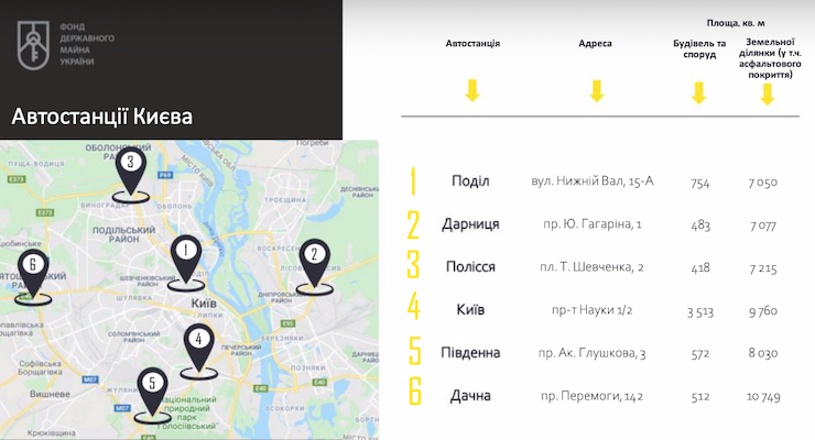 У власності «Київпассервісу» перебуває шість автостанцій у Києві – Центральний автовокзал, «Поділ», «Дарниця», «Полісся», «Південна» та «Дачна», – а також 18 станцій у Київській області.