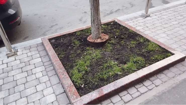 Так само невиправданою витратою він вважає бюрдюри навколо дерев, виготовлені з блискучого полірованого граніту: «Кладбіщєнскій дизайн. Бракує бронзових літер “завдяки меру”».