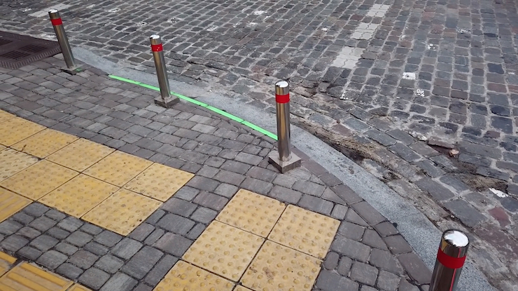 Стовпчики з полірованої «нержавійки». Кадр із відео Юліана Чаплінського