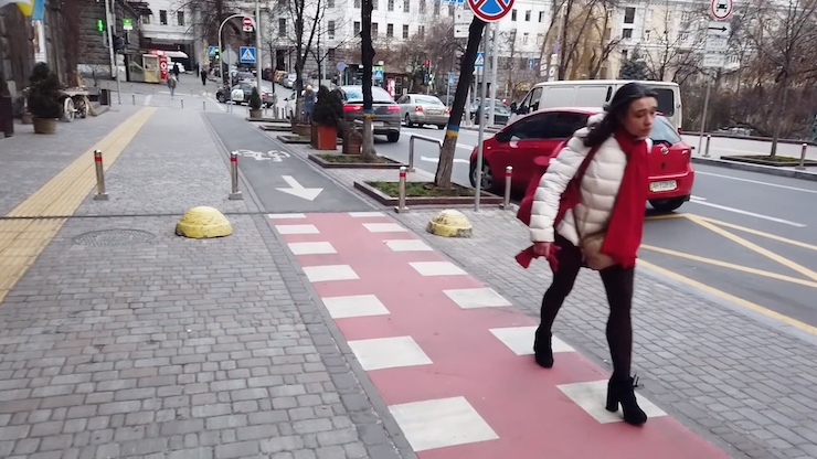 Пішоходи обирають рівну поверхню велодоріжки. Кадр із відео Юліана Чаплінського