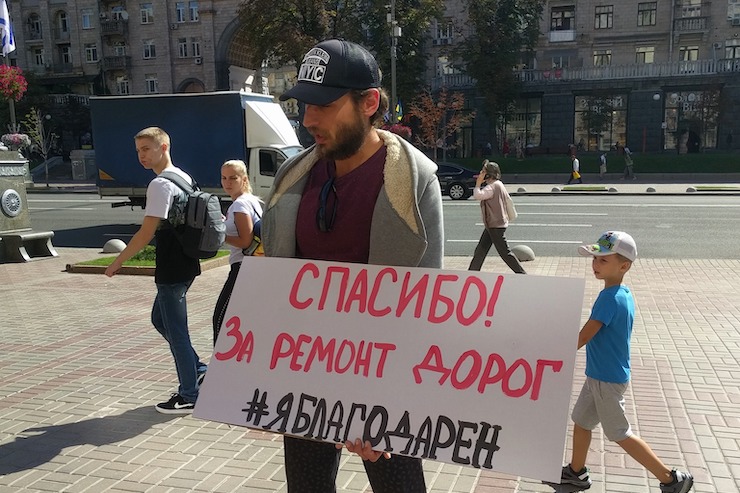 Олексій вже близько року щопонеділка приходить під будівлю КМДА з плакатом подяки.