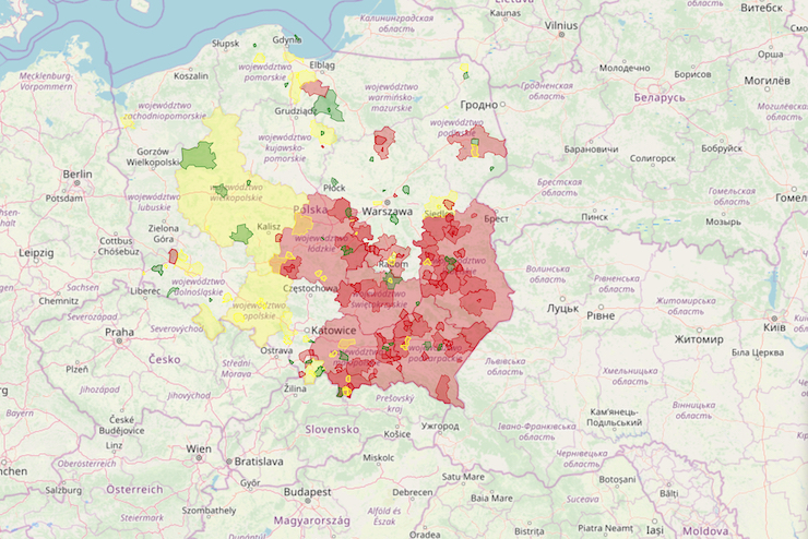 Майже 100 місцевих органів самоврядування Польщі – повітів і воєводств – оголосили себе «вільними від ЛГБТ-ідеології». Мапу цих територій станом на лютий 2020 року оприлюднено на сайті Atlas Nienawisci.