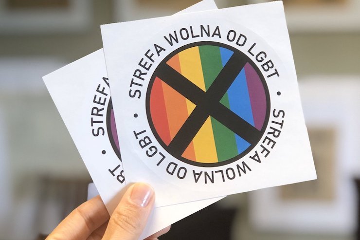 Gazeta Polska роздавала читачам наліпки «Зона, вільна від ЛГБТ». Фото: twitter.com/GPtygodnik