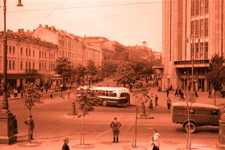 У середині ХХ століття на Хрещатику були острівці безпеки. Фото знайшов активіст Семен Широчин. Урбаніст Віталій Селик виявив, що острівці встановили орієновно в 1945 році після відновлення асфальту і демонтували десь у 1961-62 роках, коли зробили підземні переходи. Він припускає, що острівці були мобільними і перед парадом їх могли демонтувати – на фото видно сліди на асфальті.