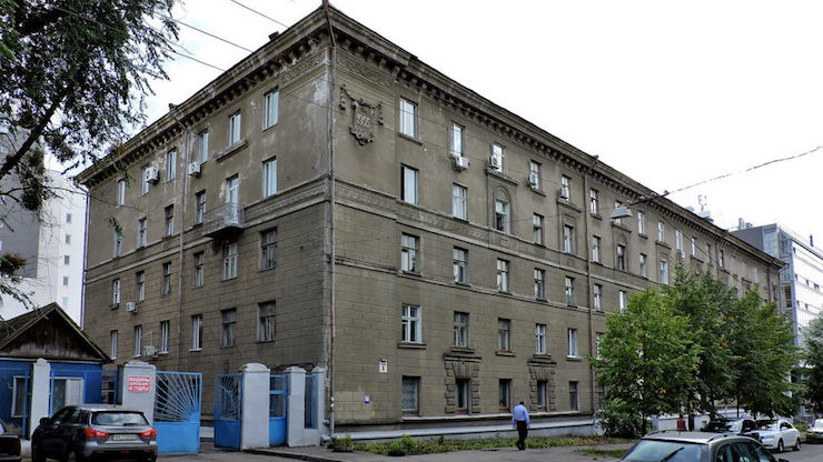 Будівлю на вулиці Бакуліна, 6 було збудовано у 1955 році у стилі сталінського неокласицизму.