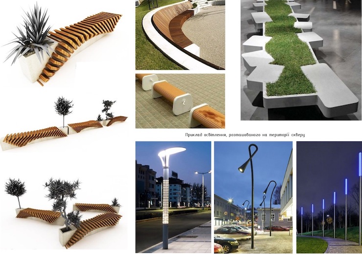 У передпроєктних пропозиціях пропонується встановити нові лави, ліхтарі, перголи (навіси), ігрові майданчики для дітей.