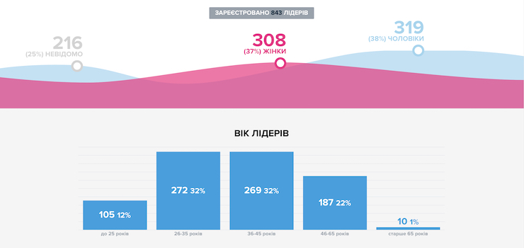 Серед 843 лідерів, які розробляли і реєстрували проєкти, – жінок і чоловіків майже порівну.