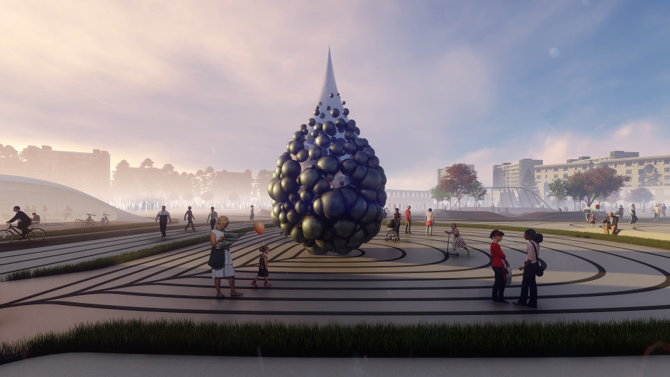 Крім того, на площі встановлять елементи, які повинні розповідати відвідувачам про проблеми води та шляхи їх вирішення. Наприклад, дві восьмиметрові інсталяції у вигляді крапель. Одна символізуватиме надмірне споживання, інша – повсюдне проникнення мікропластику.