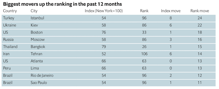 За 2019 рік Київ піднявся у рейтингу на 22 позиції – до 86-го місця. Загалом у переліку 130 міст світу.