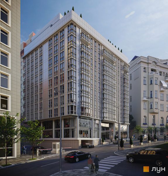 Судячи з наявного рендеру, всього тут буде 10 поверхів, перші два будуть відведені під офіси і торгівлю. При цьому новобудова чомусь зображена нижчою, ніж сусідній п’ятиповерховий будинок.