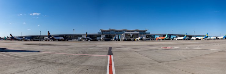 «Термінал закрито на ключ – рідкісне видовище. Стільки літаків стоїть на землі і така порожнеча в терміналі, аж жах бере. Як у фільмах жахів», – розповів Рябікін. Стоїть близько 60 бортів, понад половина з яких МАУ.