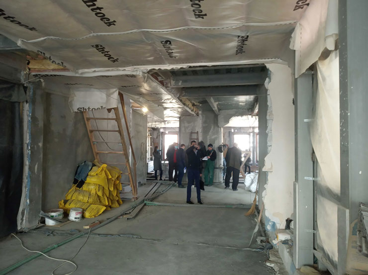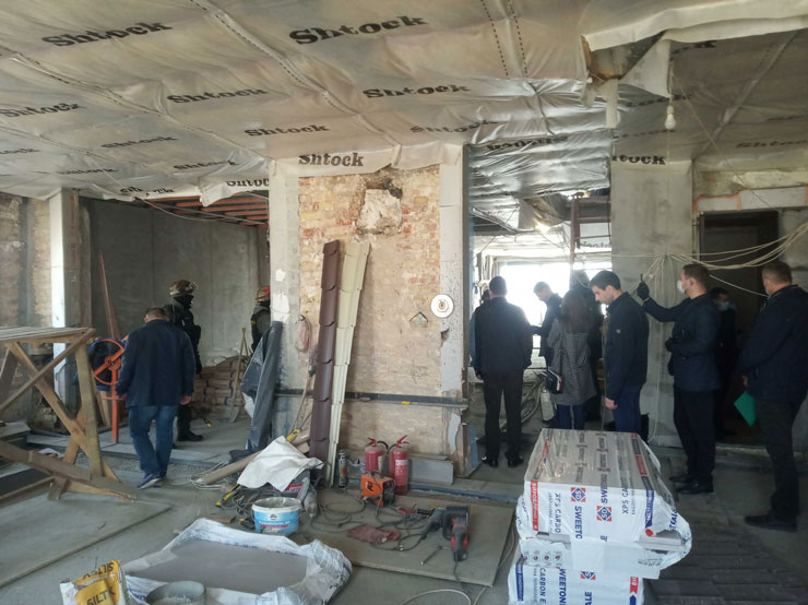 Слідчі Нацполіції разом з представниками Офісу трансформації КМДА, ДАБІ, Департаменту охорони культурної спадщини, Голосіївської РДА зайшли всередину приміщення, в якому проводиться незаконна реконструкція.
