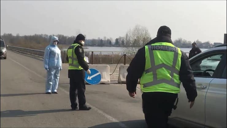 На в’їзді та виїзді до Лісників і Козина встановили контрольно-пропускні пункти, на яких вимірюють температуру усім водіям і пасажирам. Потрапити до селищ можна лише через КПП.