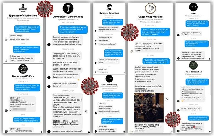 Єгор звернувся через сторінки в Facebook до більш як двадцяти барбершопів із запитом, чи працюють вони зараз і чи надають послуги їхні майстри.