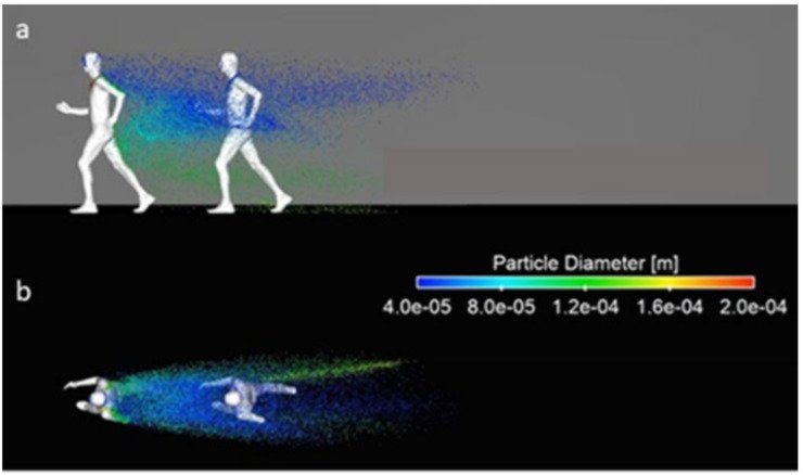 Вчені створили моделі, які показують, що відбувається, коли людина опиняється в так званому повітряному кільватері бігуна, велосипедиста чи іншої людини, яка швидко йде. Людина, яка слідує за ним, потрапляє у хмару мікрокрапель, дещо подібну до хвоста комети.