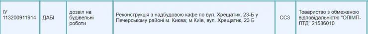 31 березня ДАБІ видала дозвіл на «реконструкцію з надбудовою кафе» на Хрещатику, 23-Б у Києві. За цією адресою, просто навпроти КМДА, розміщується закинута будівля ресторану «Гімалаї».