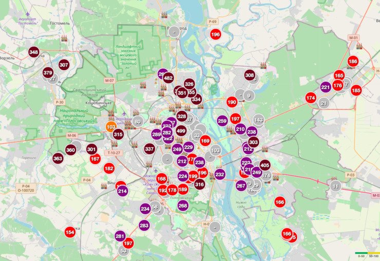Рекордно високі показники забруднення показала станція на вул. Січових Стрільців – 499 пунктів, при нормі 0-50 пунктів.