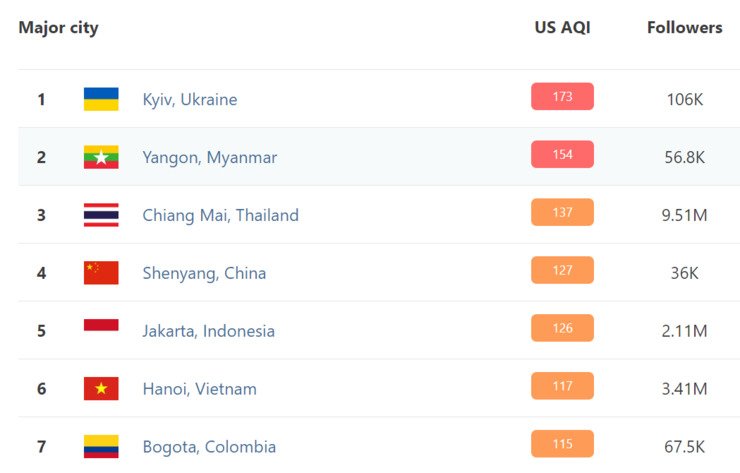 За світовою статистикою оцінки індексу якості повітря в містах світу, Київ і досі лишається лідером антирейтингу.