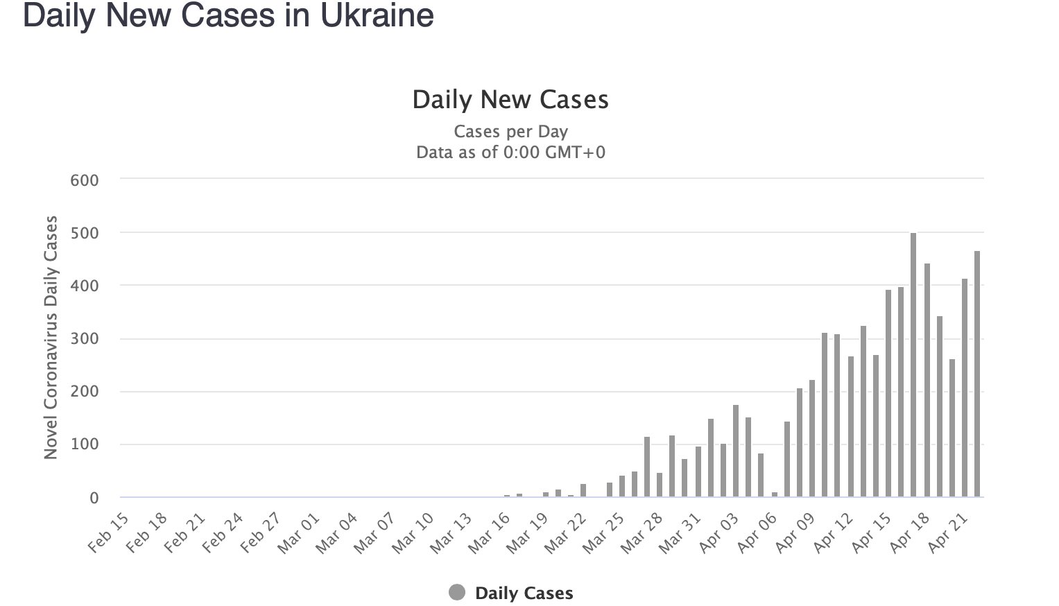 За добу зафіксовано 578 нових випадків. Згідно з графіком worldometers.info, це наразі найбільша кількість нових виявлених випадків за день. Попередній стрибок був 17 квітня (501 новий хворий).