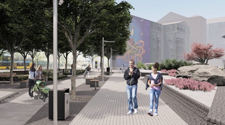 Біля оновленого будинку планують зробити сквер — і облаштувати наземний перехід до сусідньої Стрітенської вулиці.
