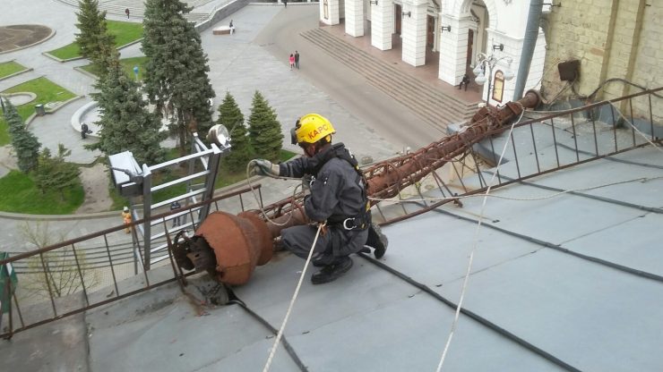 Рятувальник закріплює шпиль, щоб спустити його вниз. Фото: КАРС