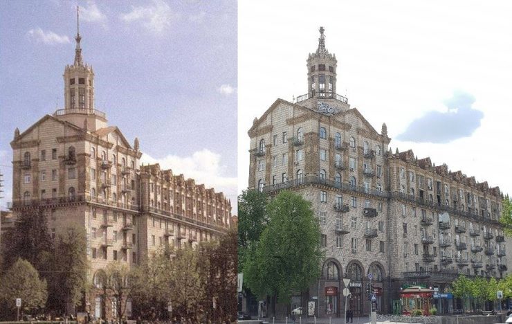 Будинок на Хрещатику до і після демонтажу. Фото: Данило Мовчан