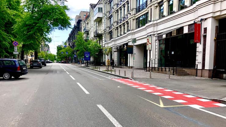 Автомобіль на велосмузі видно було навіть на фото, які опублікував заступник голови КМДА Олександр Густєлєв другого травня, розповідаючи про нову велосмугу.