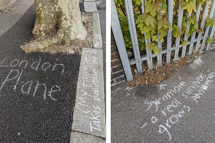 У Лондоні активістка Софі Легіл домоглася офіційного дозволу робити написи крейдою на вулицях. У Великій Британії за розмальовування тротуару крейдою можна отримати штраф аж до 2500 фунтів. Інші британські активісти роблять це нелегально і вважають такий закон безглуздим.