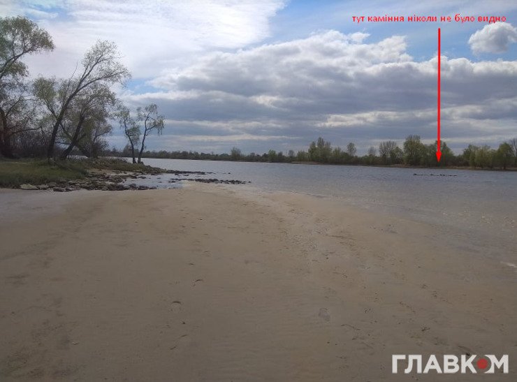 Обвідний канал біля Київської ГЕС. До середини Дніпра тепер можна дійти в гумових чоботах