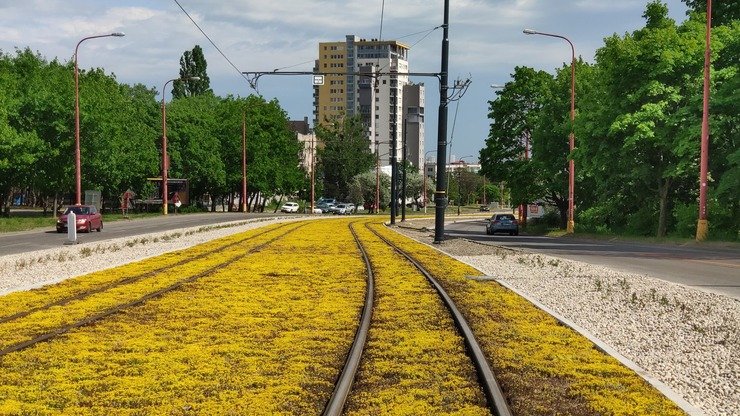 Модернізуючи трамвайну лінію, під колії висадили сукуленти для шумопоглинання та запобігання перегріву міста.